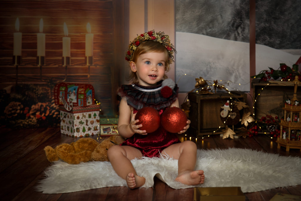 - ¿Tienes ropita navideña para bebés? Tengo algunos conjuntos de niño y niña tallas 12 y 24 meses y algún complemento (como coronas de flores, gorritos…) que podéis utilizar sin problema, pero la mayoría de la gente suele traer su ropita y podemos hacerles fotos con dos modelos diferentes. Así el reportaje será más variado.