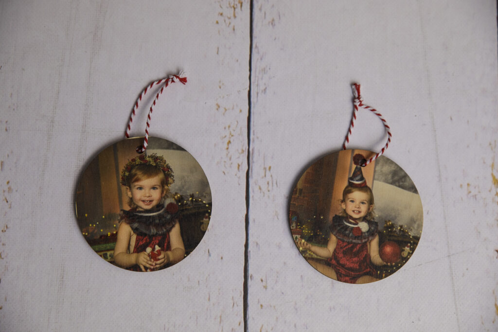 - Pack 2 colgadores circulares con grabado a 2 caras con las imágenes de tu peque, precioso para colgar en el arbol (2 uds): 14 €.