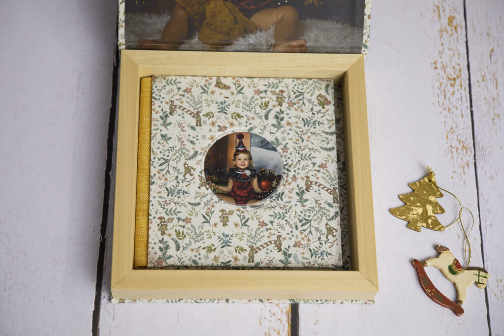 - Album acordeón de madera tamaño 13×18 con 6 fotos impresas en el interior: 50 €.