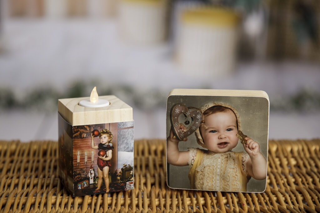 Este año habrá tres packs, a los que se le pueden añadir, si quieres, cualquiera de los productos que elijas de la variedad de muestras que dispongo. El día de la sesión puedes ver estas muestras en exposición y así elegir si te gustan las felicitaciones, los calendarios, las bolas de madera o cualquier otro regalo de los que dispongo y que se personalizan totalmente. Estoy segura de que sorprenderán y encantarán a toda la familia.