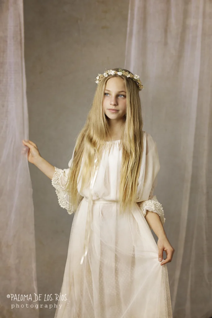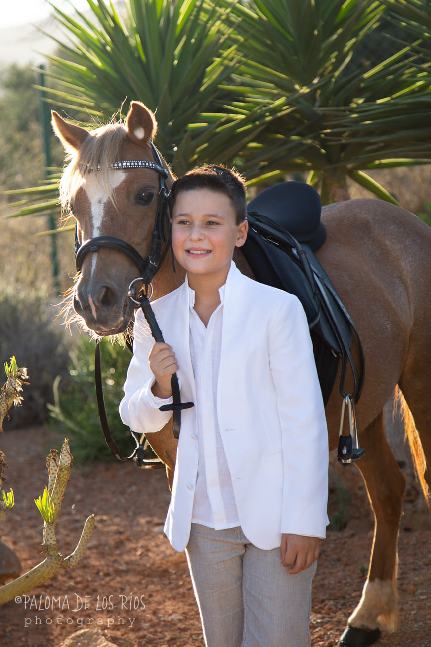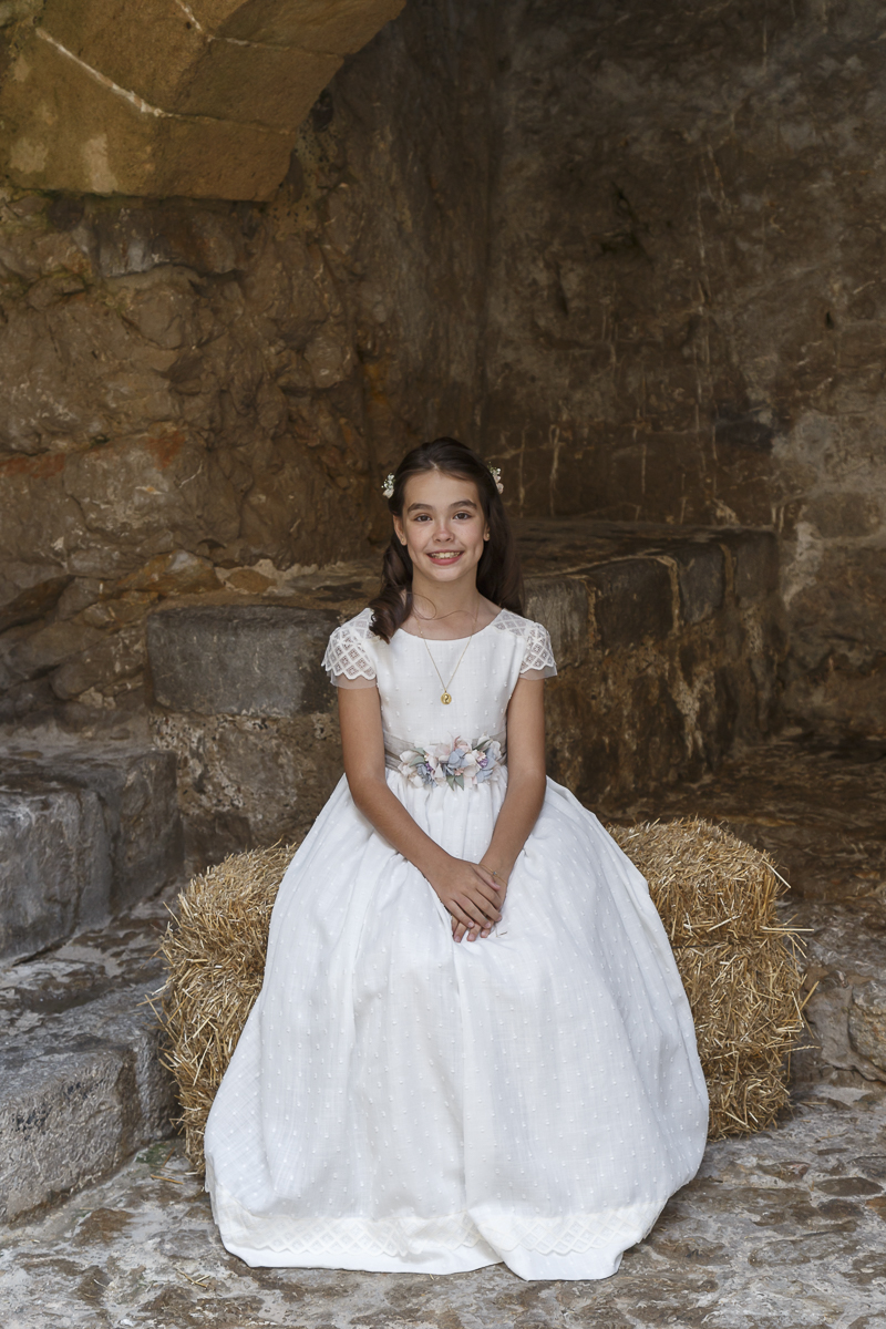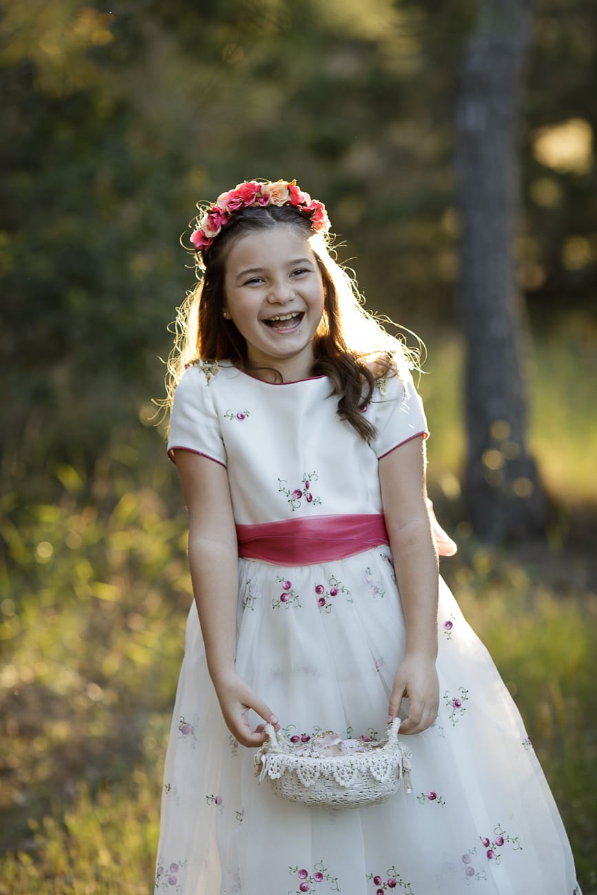 El día de la ceremonia suele ser intenso, con horarios, invitados y muchos nervios. Por eso, muchas familias prefieren hacer el reportaje en otro momento más tranquilo, donde el/la protagonista pueda disfrutar sin prisas. Durante la sesión dejamos espacio para que se mueva, camine y se relaje poco a poco. Al principio pueden mostrarse algo tímidos, pero en pocos minutos suelen soltarse y empezar a disfrutar. Mi trabajo es acompañar ese proceso para capturar gestos naturales y expresiones auténticas.